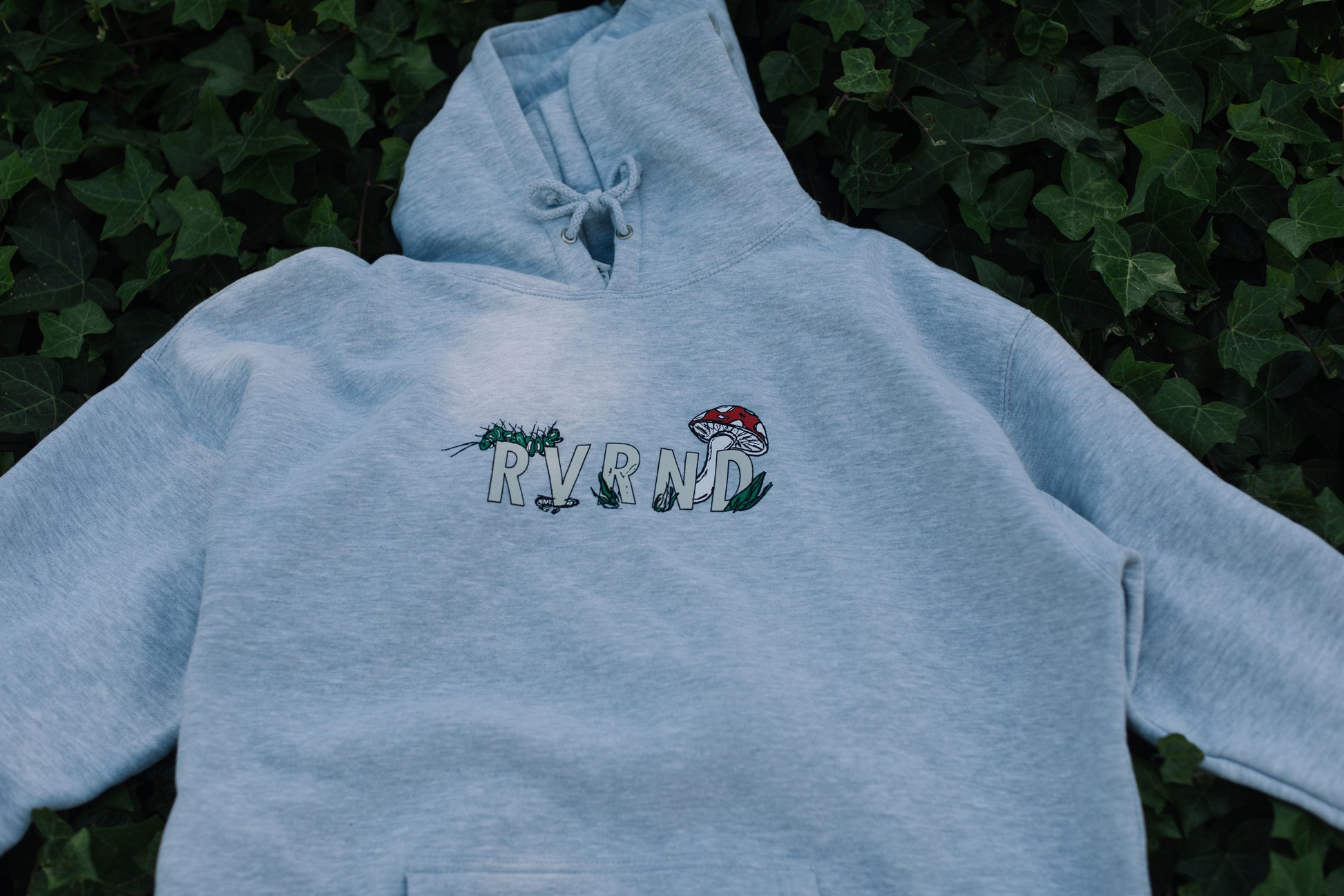 - This is by far my favorite drop and I have been doing this clothing thing on and off for years. This one came to fruition off pure randomness. I had printed the “RVRND” logo and just started to draw around the lettering with spring in mind. The mushroom idea came from the idea of life after death with most fungi live in soil or dead matter, but fungi is the life of micro organisms. At times we can ponder on what direction life will take us and feel our problems are so minuscule to the world around us. I wanted to bring back life to the brand that I so often drop on and off on - here is another rebirth.