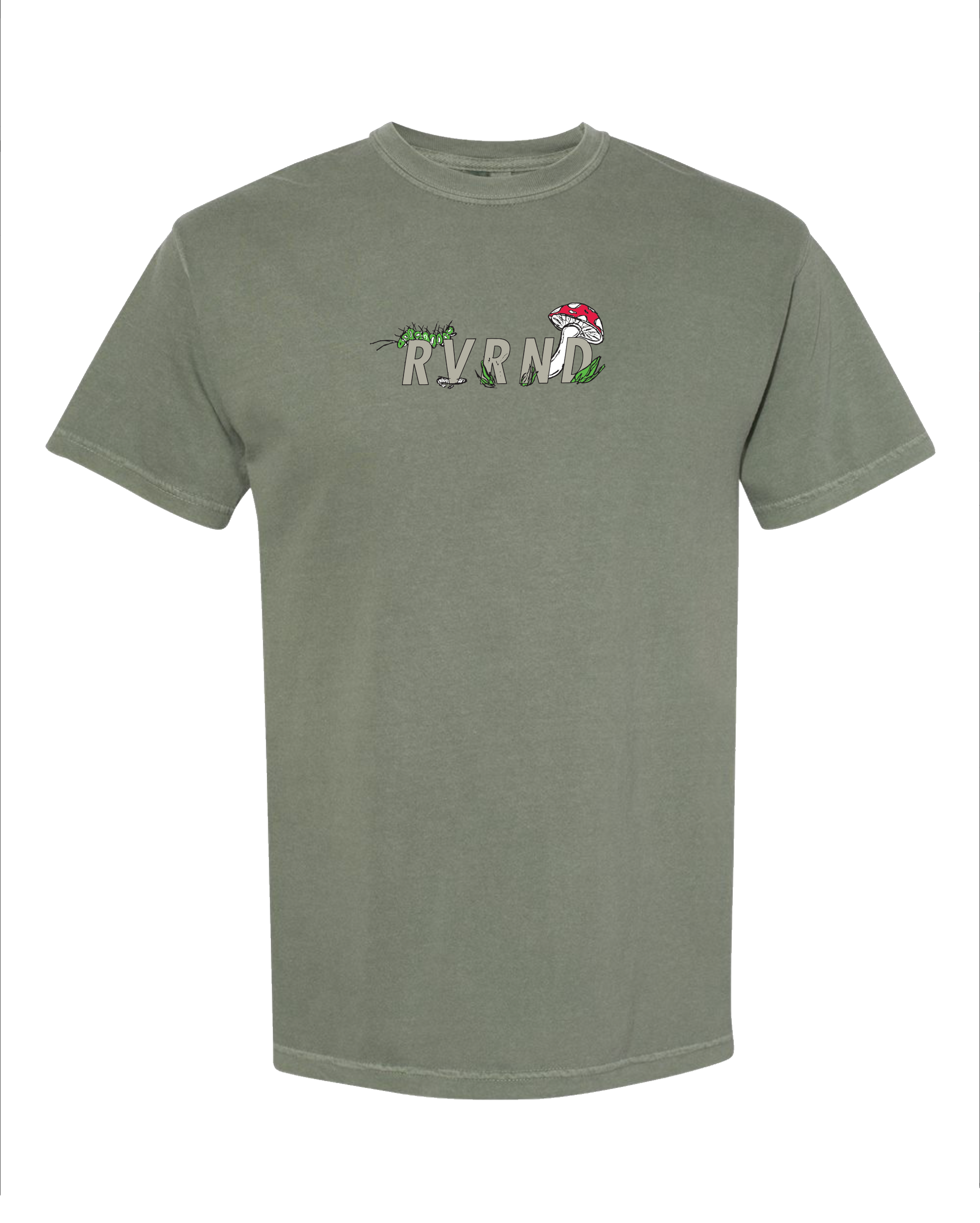- This is by far my favorite drop and I have been doing this clothing thing on and off for years. This one came to fruition off pure randomness. I had printed the “RVRND” logo and just started to draw around the lettering with spring in mind. The mushroom idea came from the idea of life after death with most fungi live in soil or dead matter, but fungi is the life of micro organisms. At times we can ponder on what direction life will take us and feel our problems are so minuscule to the world around us. I wanted to bring back life to the brand that I so often drop on and off on - here is another rebirth.